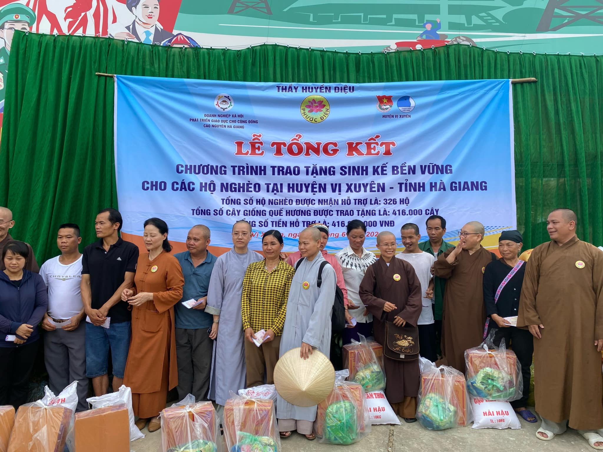 On behalf of the individuals involved in implementing the program, I would like to express my sincere gratitude to Grandmaster Thượng Huyền Hạ Diệu, members of the Phuoc Dien Buddhist group, the Mam Xanh group, the Tram Huong Lac Viet group, and all the friends who have continuously supported and accompanied us throughout the implementation of this meaningful program.